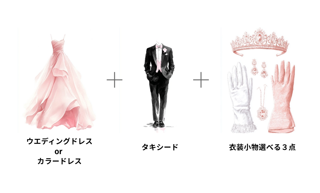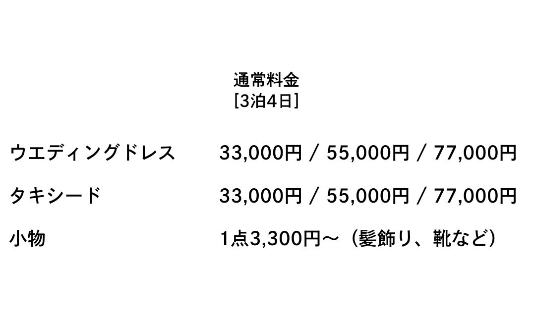 ウエディングドレス・タキシードを用途に合わせてお値打ちにレンタルできる