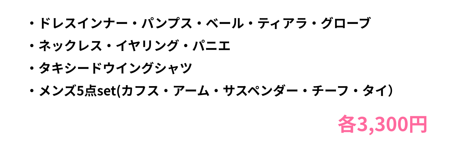 小物アイテム5点セット11,000円レンタル可能